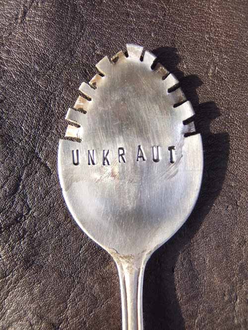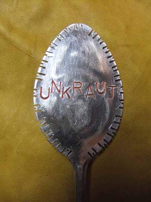 Hier ein versilberter Kaffeelöffel, es gibt ja großes und kleines Unkraut