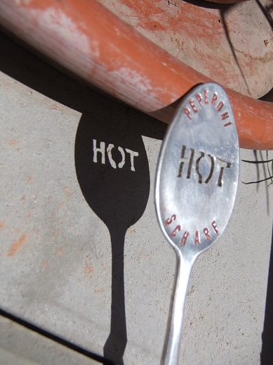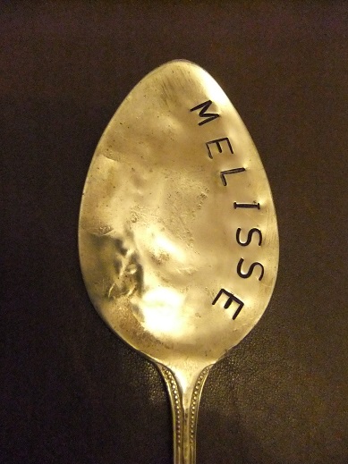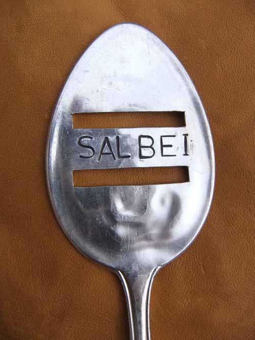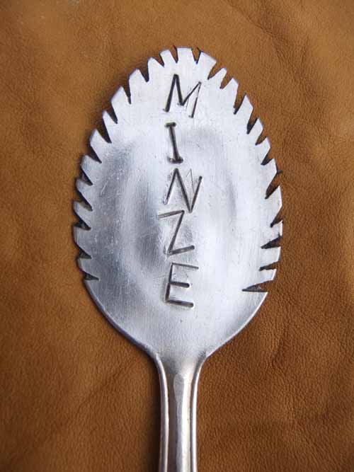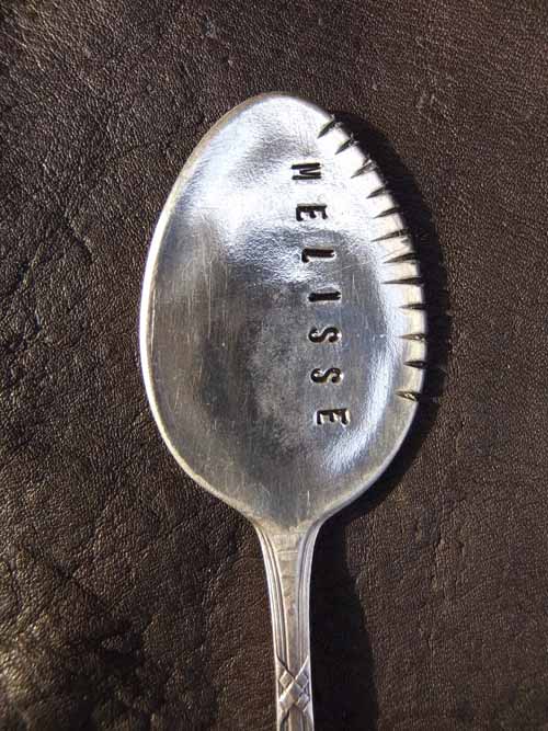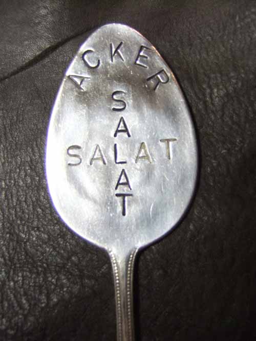 Esslöffel, beschriftet und ausgesägt
