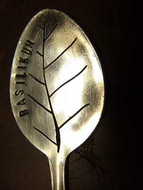 Ausgesägt aus einem versilberten Esslöffel